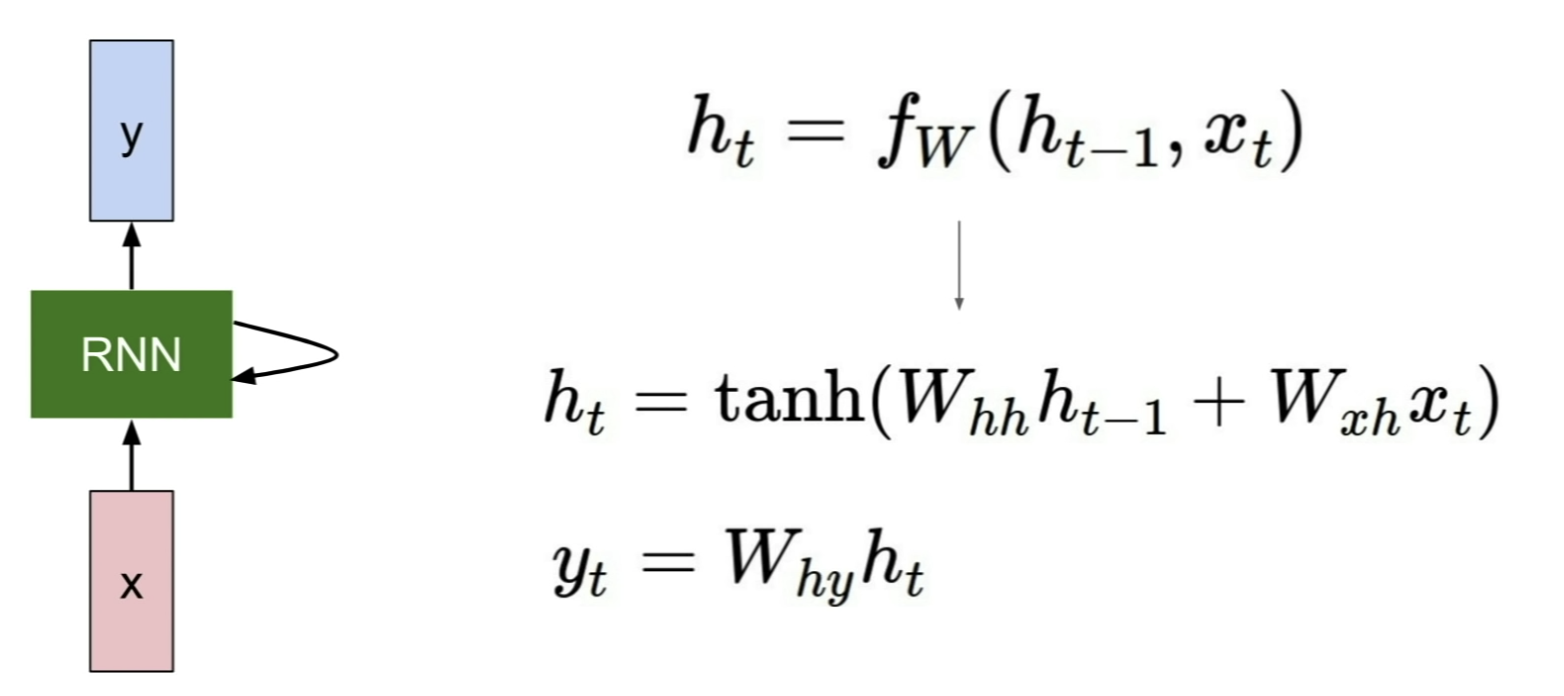 ht = tanh(Whh * ht-1 + Wxh * xt)