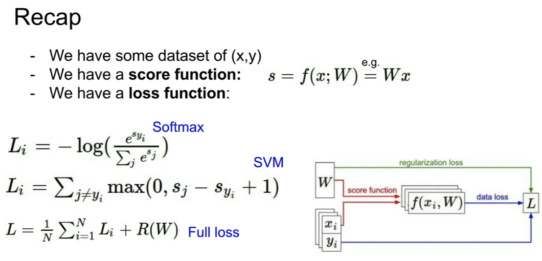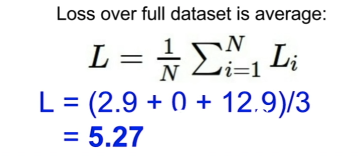W를 계산해낸 이 loss function은 score 를 보고 W가 얼마나 양적으로 나쁜지 알려주는 척도이다.