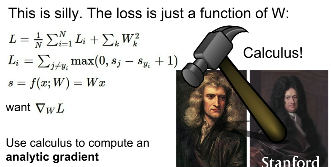 loss가 그 자체로 W의 함수이기 때문에, loss function에 w로 편미분을 하면 된다.