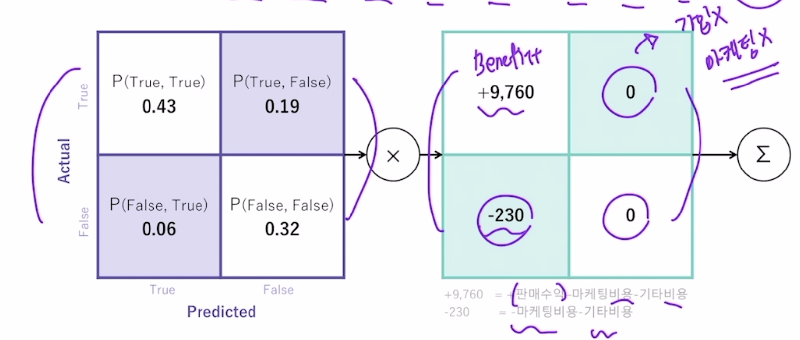 - 정밀도 = 예측을 P로 한 대상중에 예측과 실제값이 P로 일치한 데이터의 비율 TP / (FP + TP)