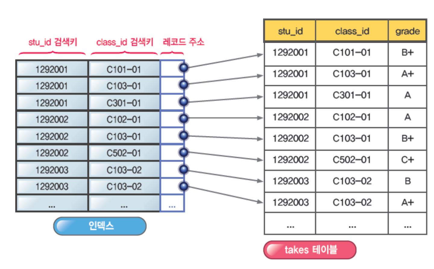 👉🏻 인덱스와 간접 참조되어 있음