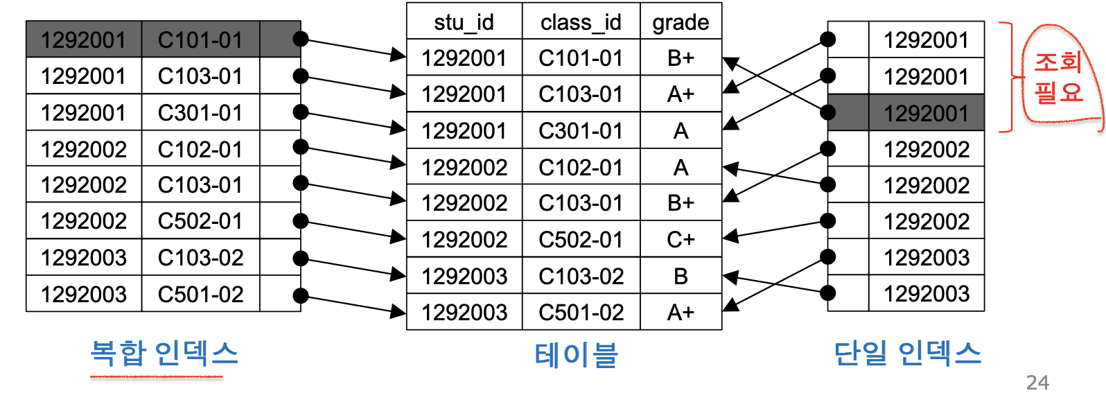 👉🏻 인덱스와 간접 참조되어 있음