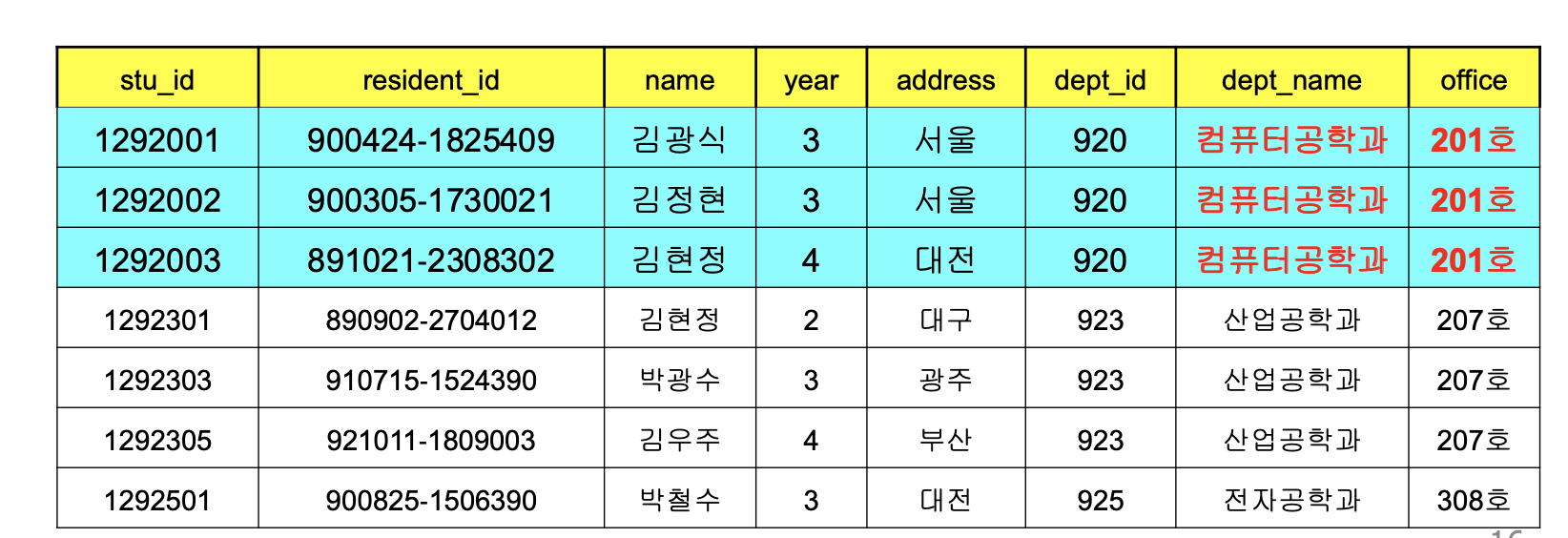 각 레코드의 dept_id 값에 대해 위 인덱스를 사용하여 student 테이블에대응되는 레코드를 직접 조회한다.