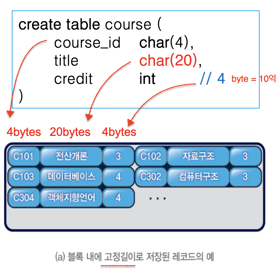 1) 고정 길이로 저장된 레코드