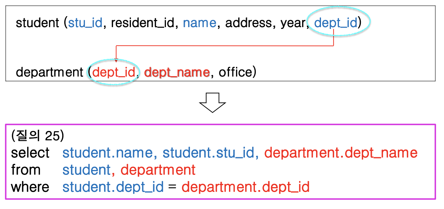 FROM Student s NATURAL JOIN Department d <-- join 조건 생략