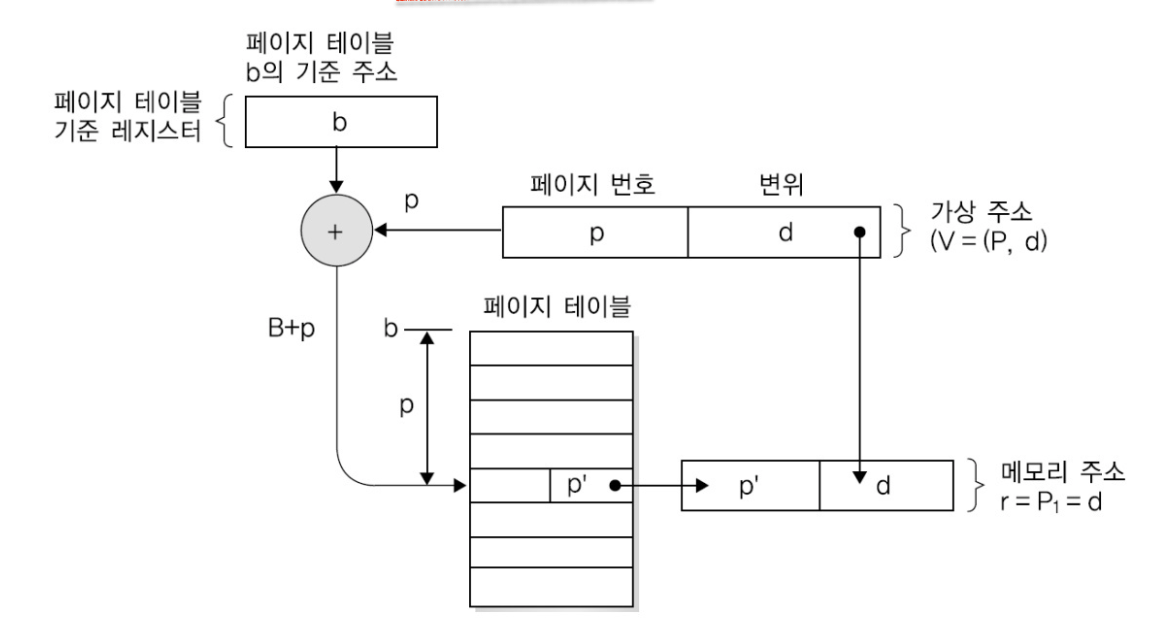 논리 주소 = 페이지 번호(p) + 페이지 변위(d)