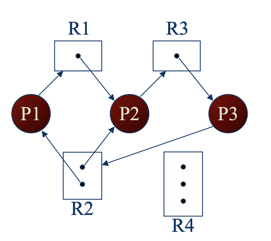 -> P2는 R1을 보유하고 있고, R3를 기다리고 있다.