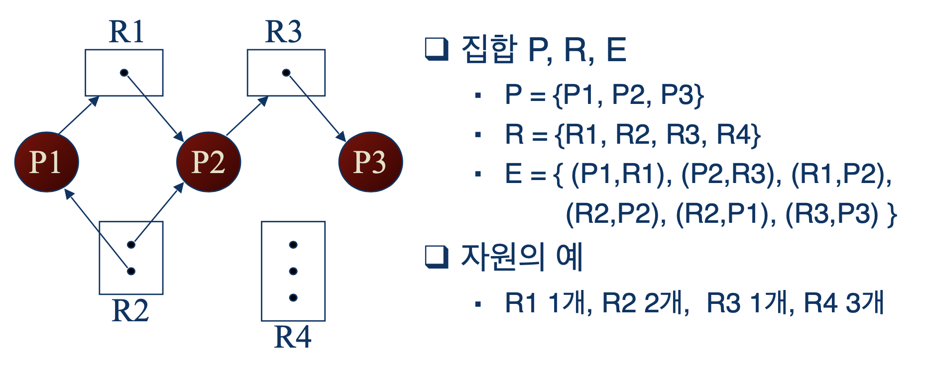 V = 정점들의 집합 (시스템 내의 모든 자원 R 과 프로세스 P )