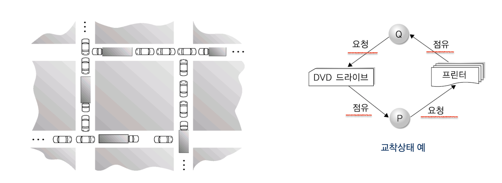 둘 이상의 작업이 보류 상태에 놓여 자원을 이용하기 위해 서로 기다린다.