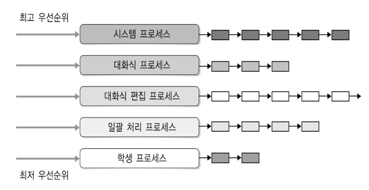 : 준비상태의 큐를 종류별로 여러 단계로 분할합니다.