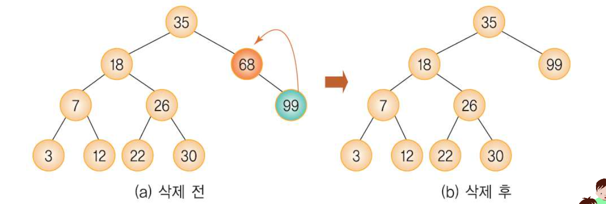 ③ 삭제하려는 노드가 두 개의 서브 트리를 모두 갖고 있는 경우