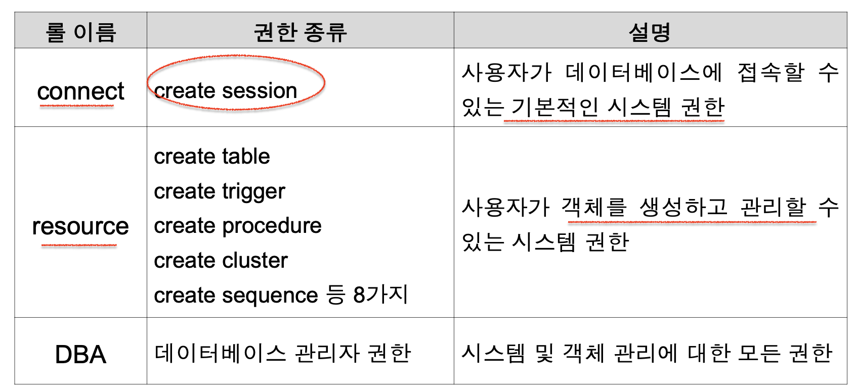 무결성과 보안 3) 사용자 계정 생성과 권한 부여, 오라클 기본 롤 (0) | 2020.11.26 |