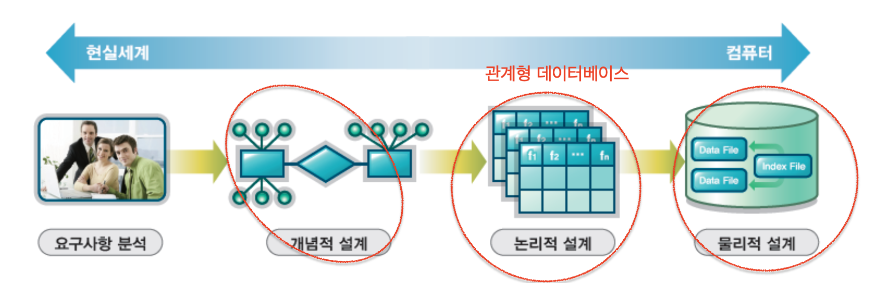 -> 개념적 설계 단계에서 생성된 ERD를 바탕으로 생성되는 테이블들의 집합