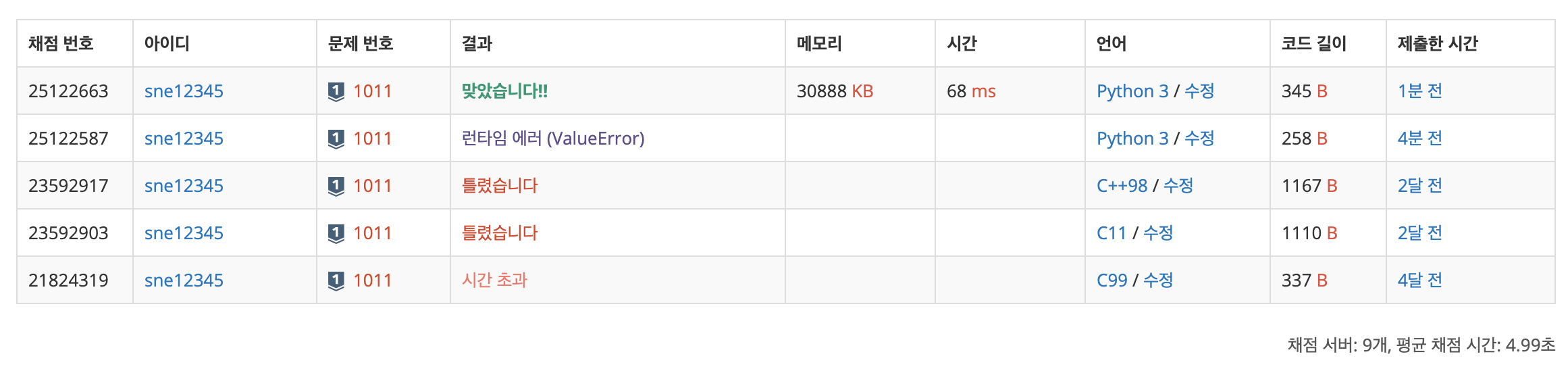 => 여기서 뒤에 조건을 설정해주지 않아 계속 틀렸는데요 ㅠㅠ