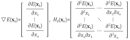또한, 뉴턴법을 다변수 함수의 최적화 문제로 확장하면 식을 아래와 같이 수정하여 적용할 수 있다.