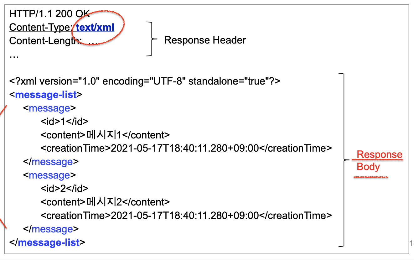 REST API에서는 메시지 바디 내용의 포맷을 나타내기 위한 파일 확장자를 URI 안에 포함시키지 않습니다. Accept header를 사용하도록 합시다.