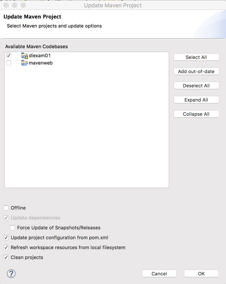 프로젝트를 선택하고, Maven -> Update Project를 선택합니다.