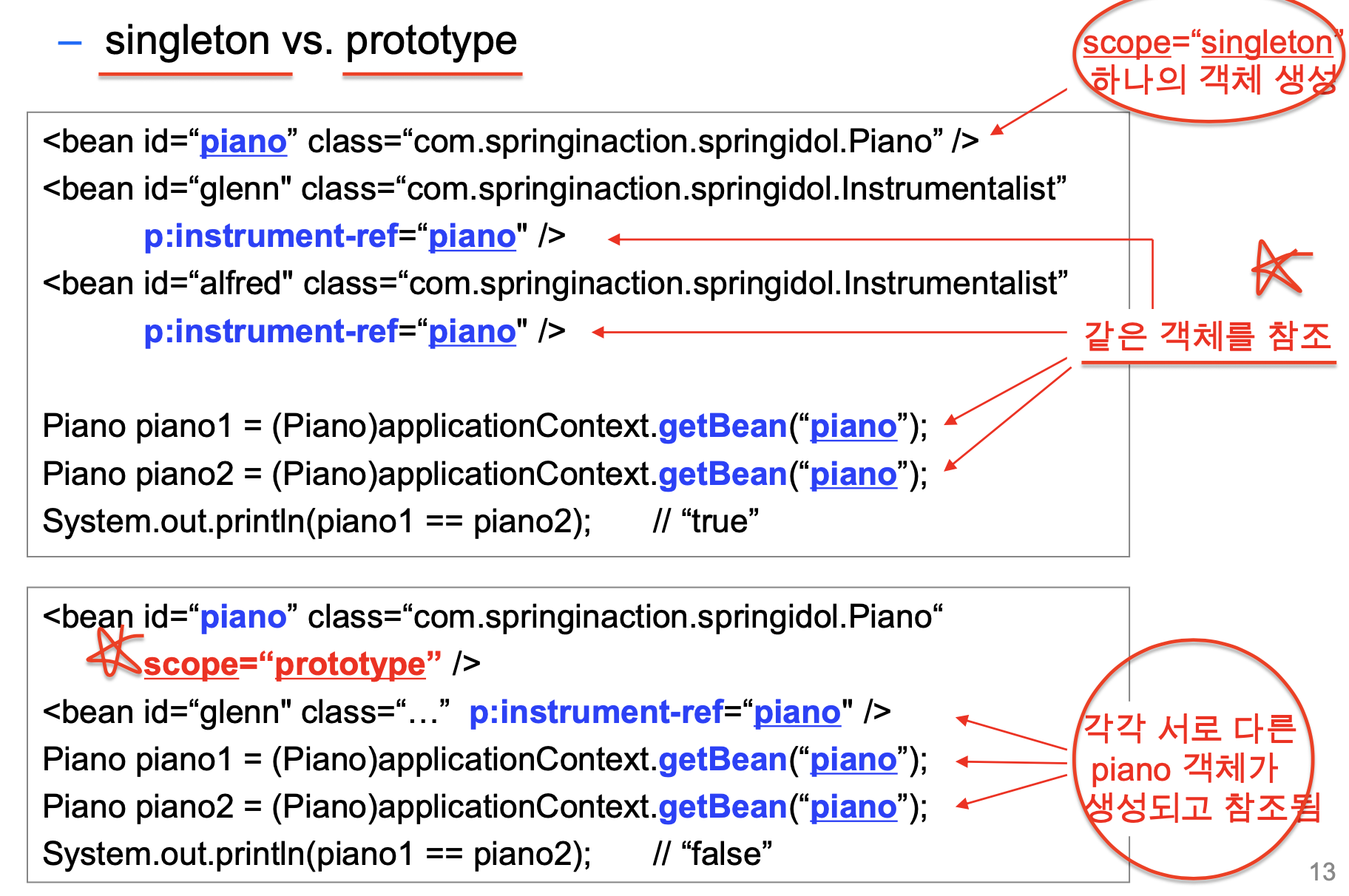 Spring container는 기본적으로 한 개의 bean instance만을 생성(singleton)