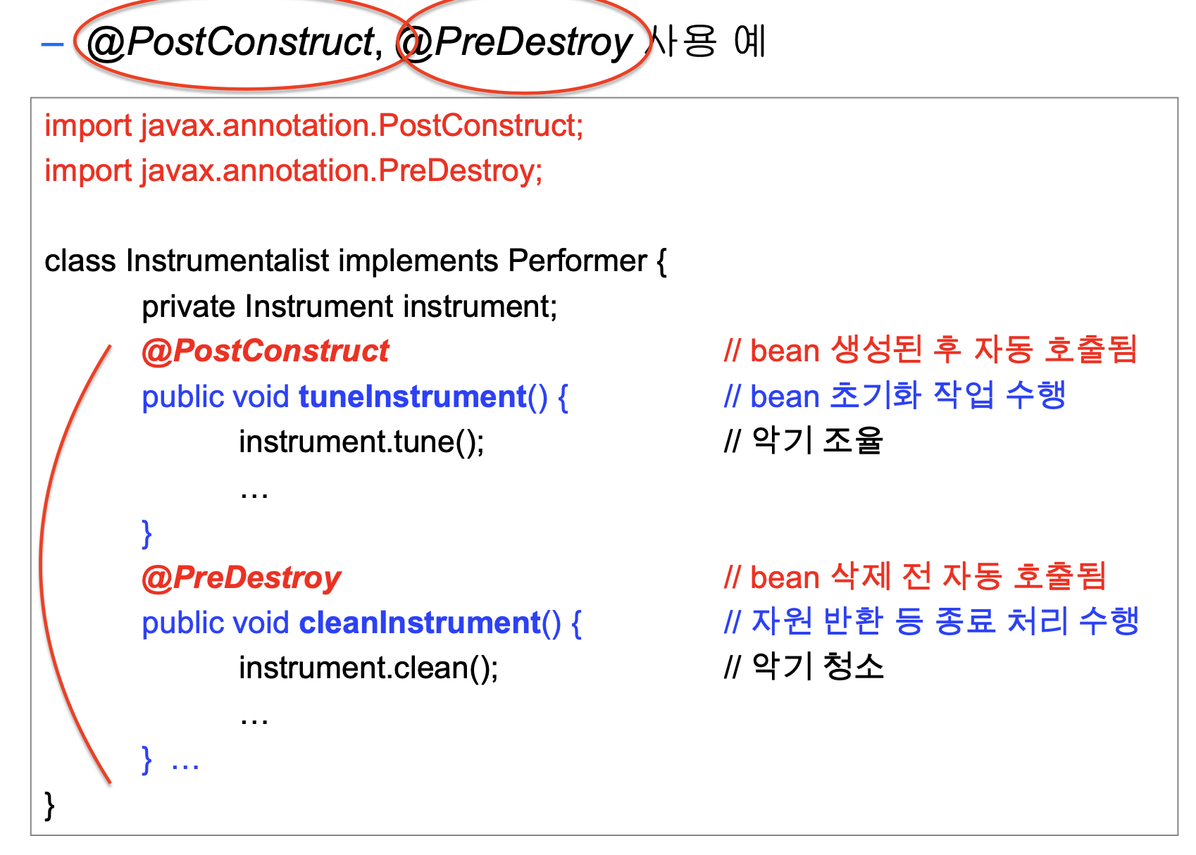- Bean 객체 생성 및 DI 수행 후에 호출되는 메소드